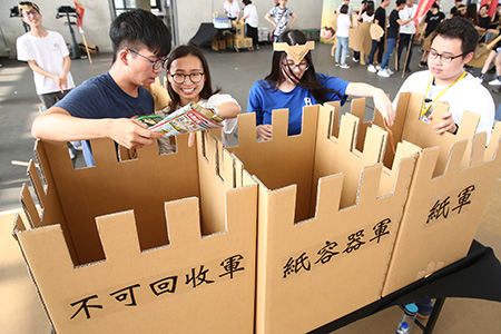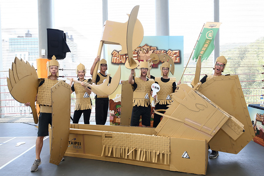 夯三國靠手遊豈能過癮,台灣區造紙工業同業公會(簡稱造紙公會)發出穿越時空英雄帖,魏、蜀、吳三國紙騎軍隊實戰對峙,熱血開打! 造紙公會主辦的亞洲唯一大型創意紙箱賽事「紙箱戰紀」,今(27)日假實踐大學體育館“重返三國“,來自全國二十餘所大專院校、超過200位穿戴創意紙戰備和駕騎紙戰車的精銳盡出,現場戰鼓擂鳴,旌旗蔽天。比賽以『紙戰黃巾』及『赤壁大戰』兩輪賽制選出三國霸主,初賽兩道關卡圍繞紙分類設計,造紙公會希望能持續宣導正確回收分類,同時也呼籲本地回收紙分類標準與國際接軌,朝循環經濟的發展方向,從求量進階到求質時代。